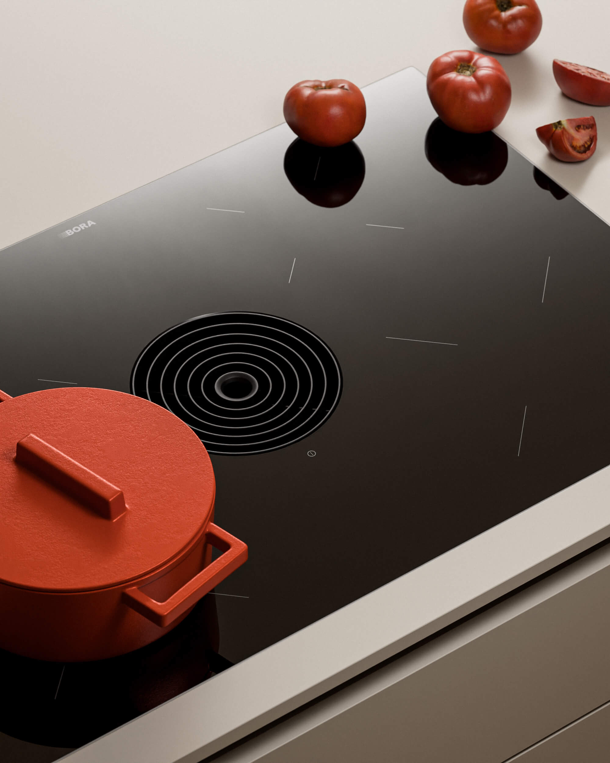Kochen in einfach und schön. Induktionskochfelder mit integriertem Dunstabzug von Bora aus Deutschland.