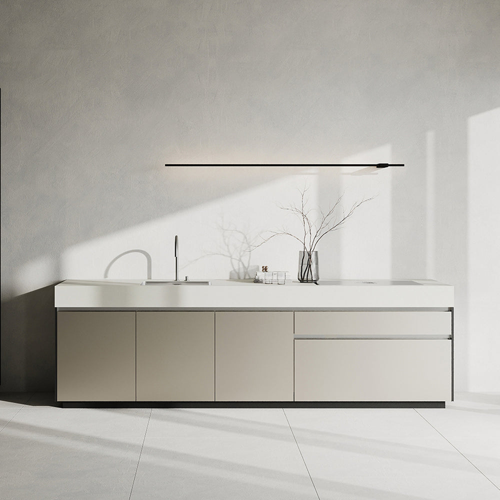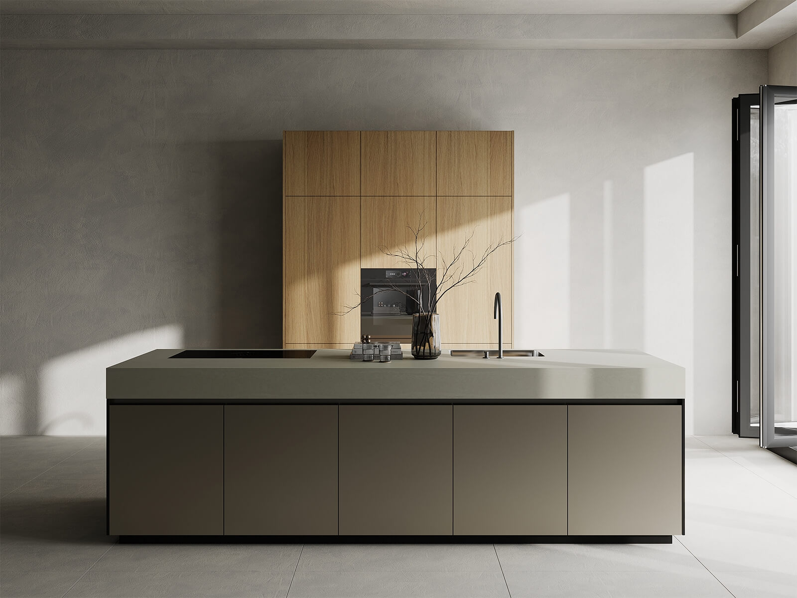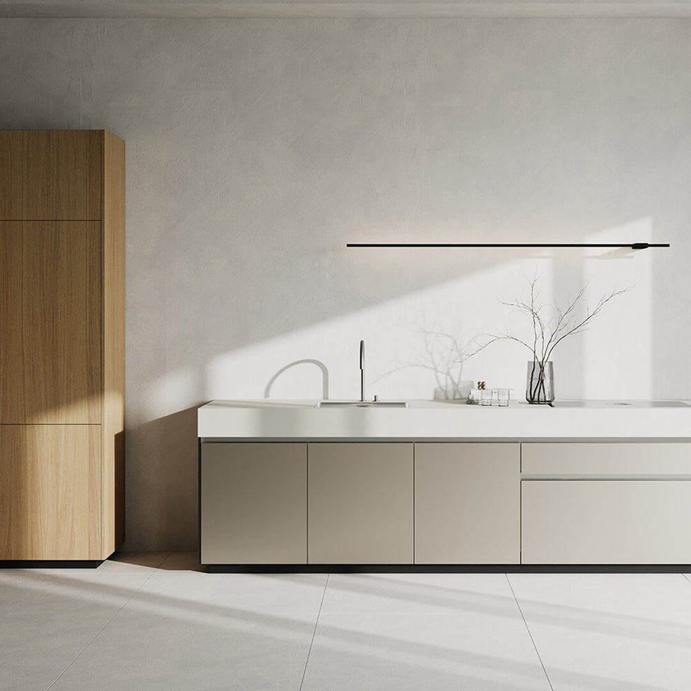 Hochschränke mit Insel oder Wandzeile. Jeweils in drei Größen.